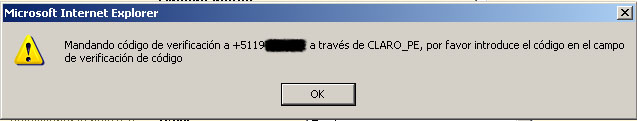 presionamos el botón Enviar código de verificación: 6. Si todos los datos anteriormente ingresados son correctos te va a aparecer una ventana de confirmación que debes aceptar