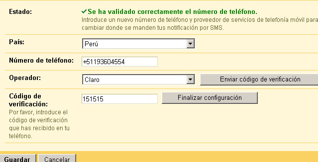Google Calendar y entramos a la sección Opciones. 3. Luego hacemos clic en el Notificaciones: 4. Vamos a la parte inferior de la pantalla donde dice Enviar notificación a mi teléfono móvil: 5. Ingresamos nuestro numero de teléfono, siempre anteponiendo el código de